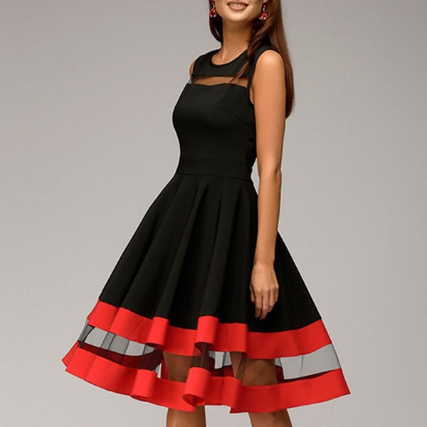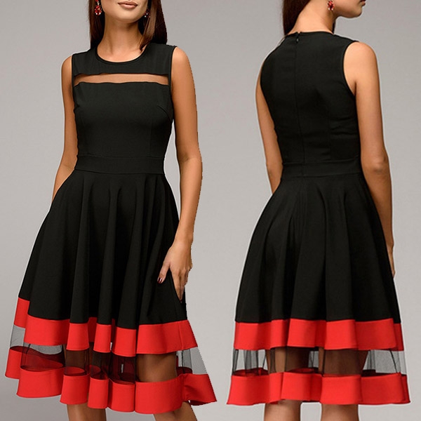cast in round neckline, sleeveless, sheer mesh spliced design at the front for a chic appeal,