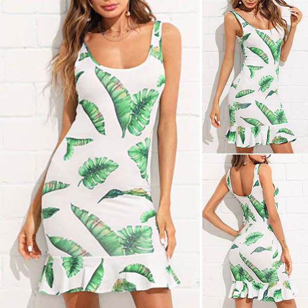 This dress is designed with round-neck,sleeveless and lotus splice,which can easily decorate your perfect