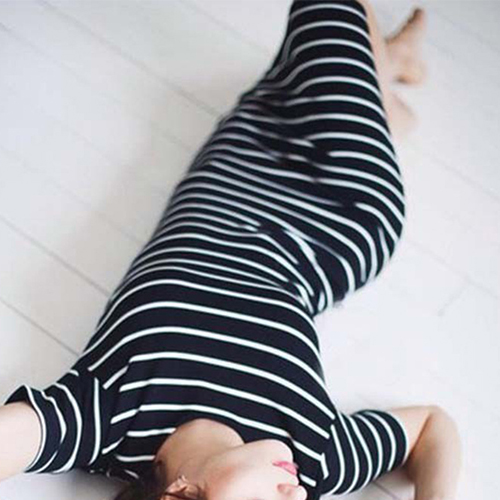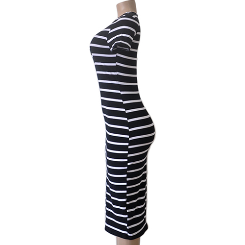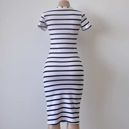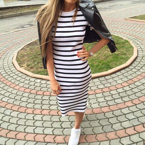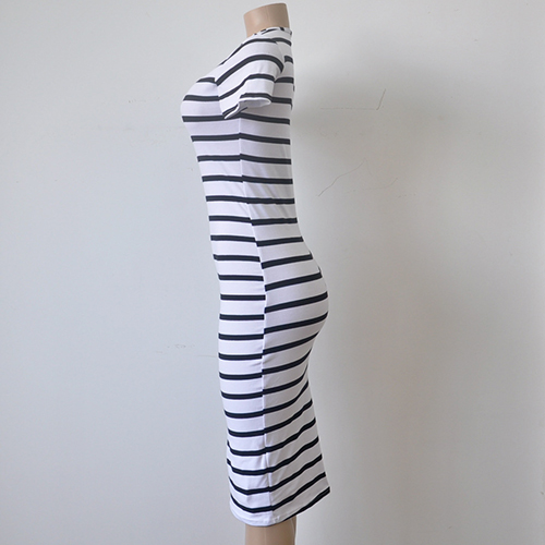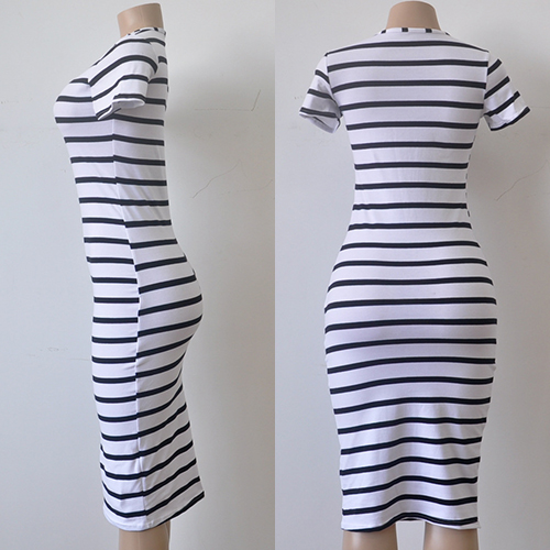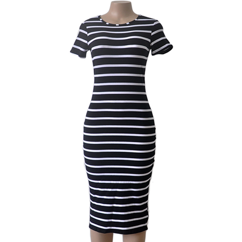 status. Striped series, accompanied with round neck, short sleeve and slim fit design, this dress effortlessly