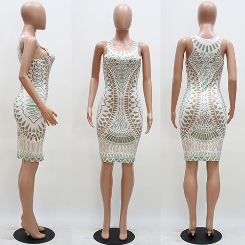 A slim-fitting silhouette, with round neck, sleeveless and unique printed design, this dress can show your