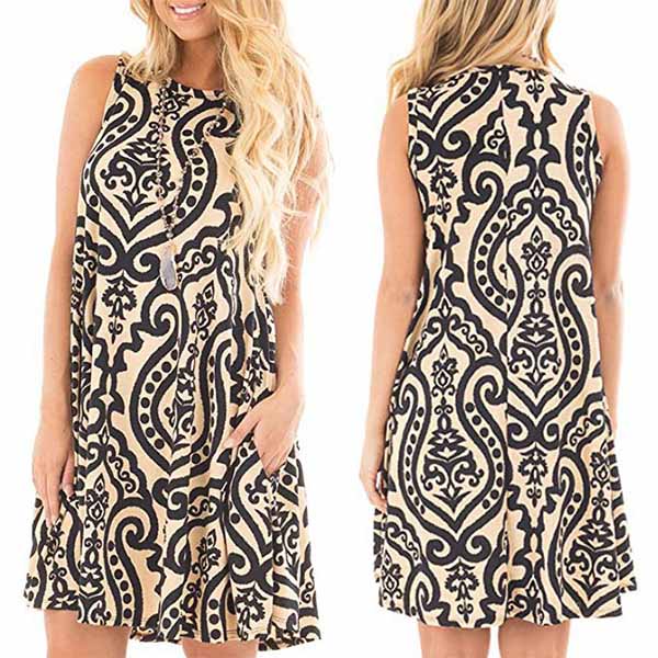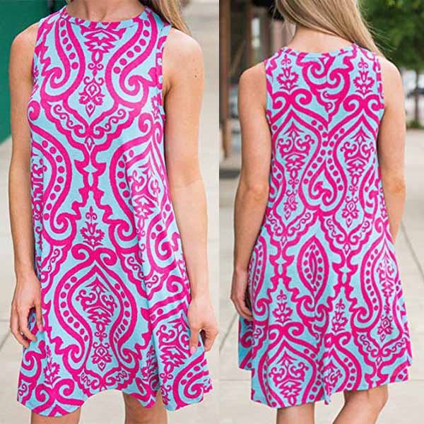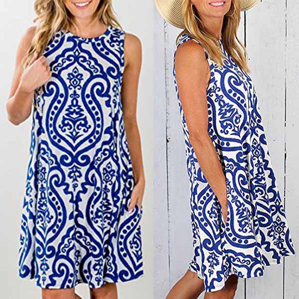 Contrast color, with sleeveless and round-neck, simple but fashionable.Printed pattern can make this dress
