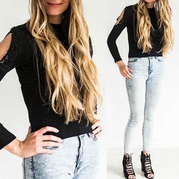 Solid color style, with round neck and long sleeve, simple and concise.Hollow out and embroidered design,