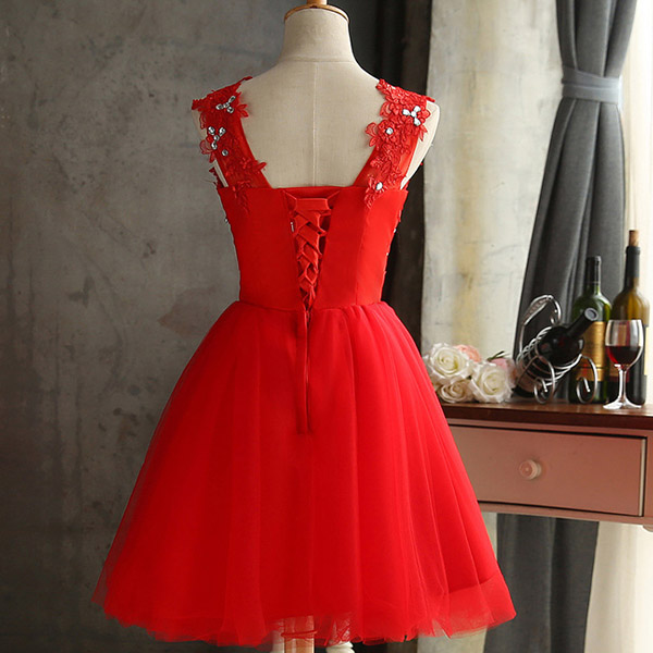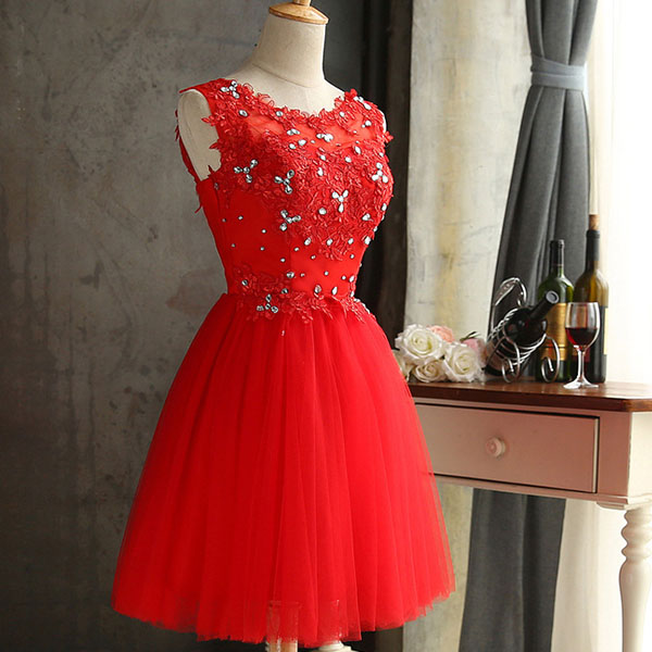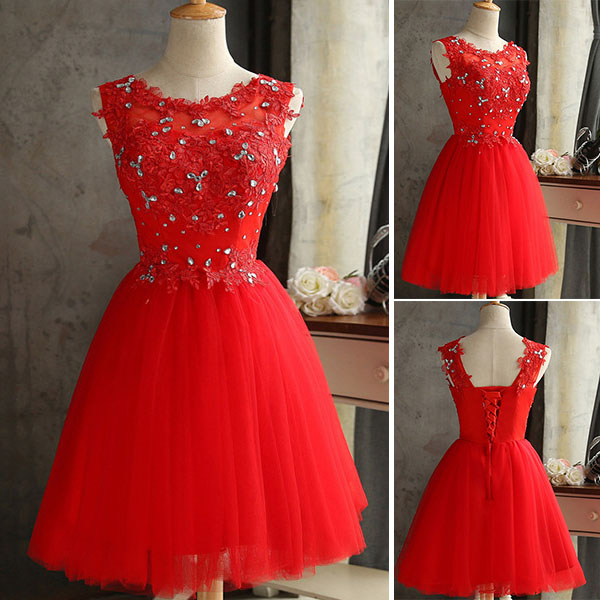 The solid color embroidered dress would give you a sweet look.Its high quality and exquisite lace material