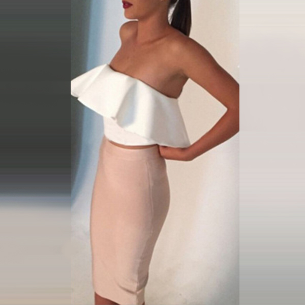 Don't know what to wear for tonight's party? Then we suggest you this two-piece set. Including a ruffle bandeau top