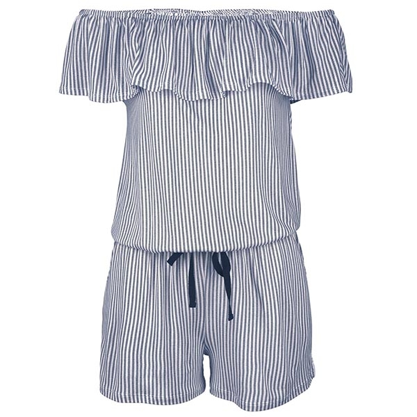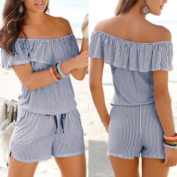 Summer style looks a lot like this romper:sexy and charming! Designed with striped element,the ruffle boat