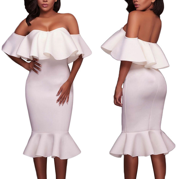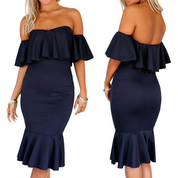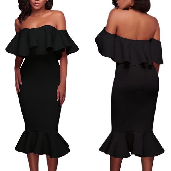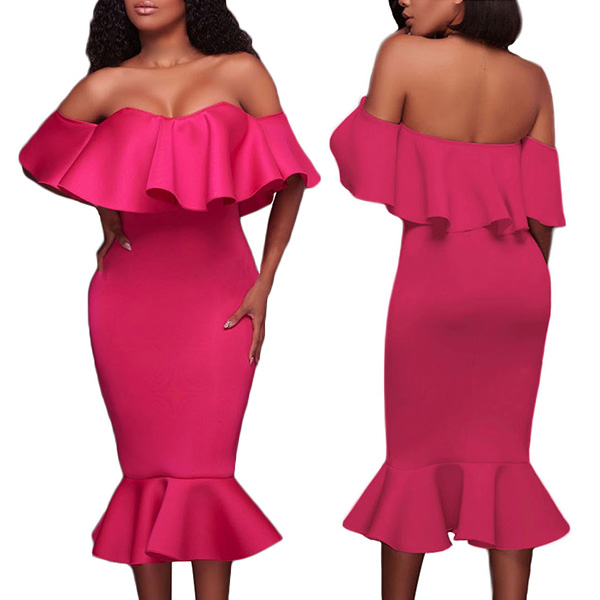 will help you achieve that. Solid color style,its off-shoulder wide neckline with ruffle design and its fishtail hem makes