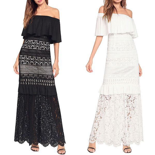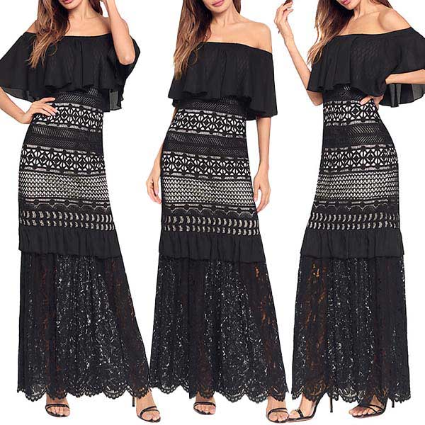 The ruffle boat neck,high waist and lace spliced design make this piece look so sexy and alluring.