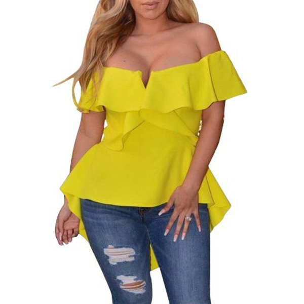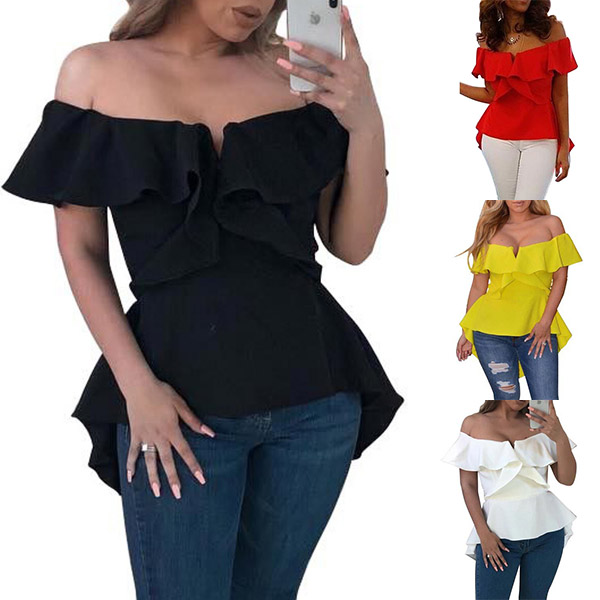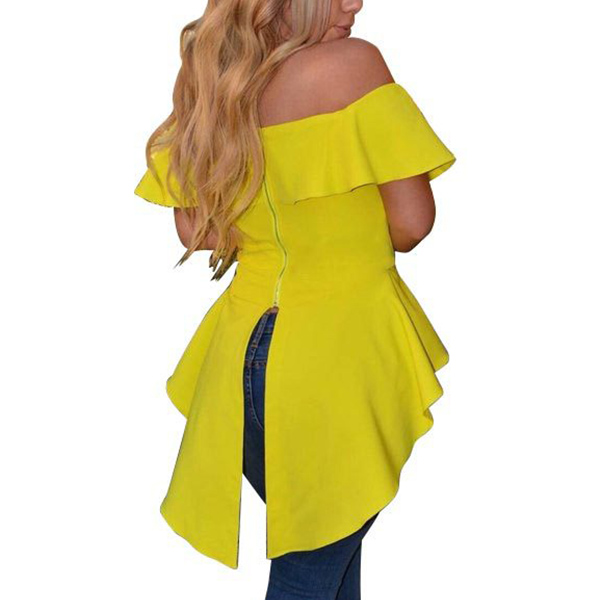 finished with ruffle boat neck and slit high-low hem,sexy and alluring. Matching with your high waist
