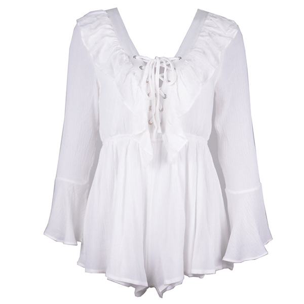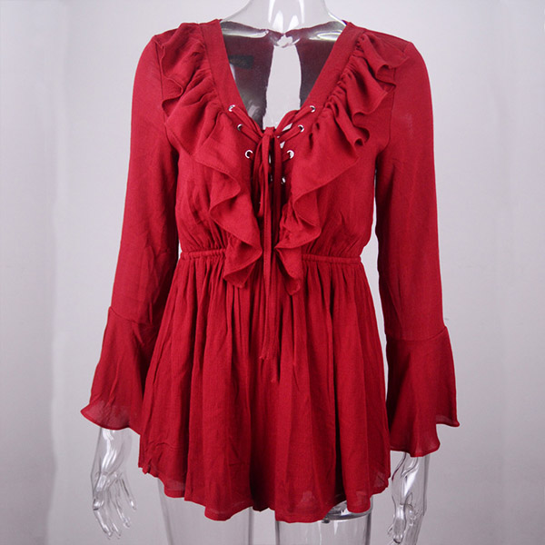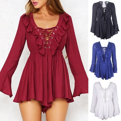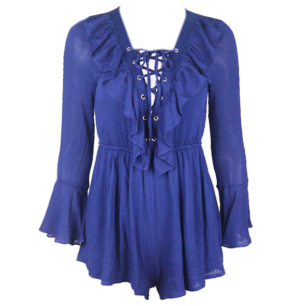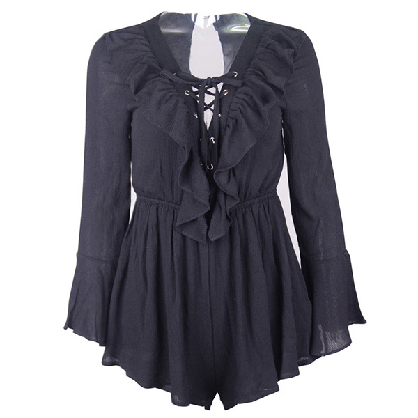 You don't need to wonder why all eyes are on you when you don this romper! Solid color style,the lace-up
