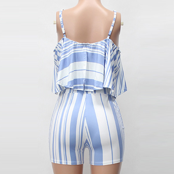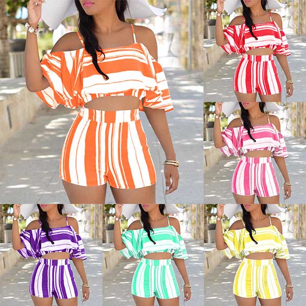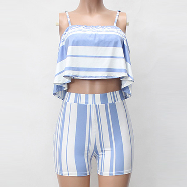including a ruffle sling crop top and a high waist shorts,this two-piece set can perfect demonstrate