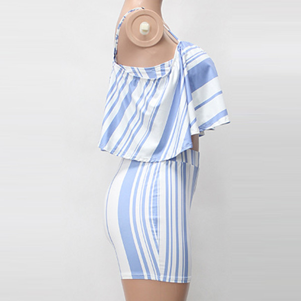 For your tropical getaways,this two-piece set can give you a sexy and charming style. Striped style,