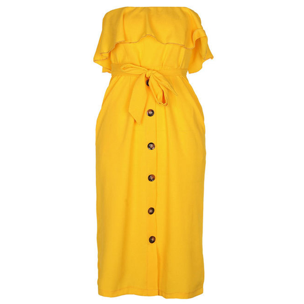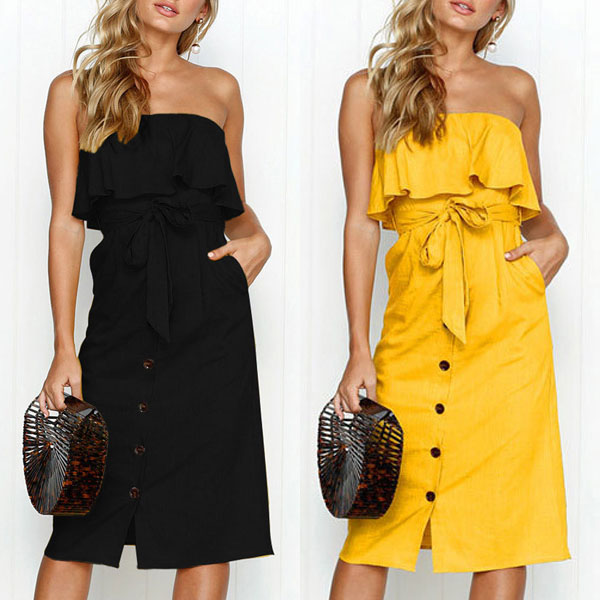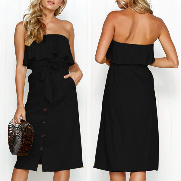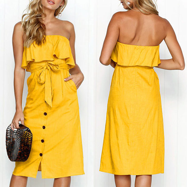 Exude your charming feminine appeal through this dress. Solid color style,the ruffle strapless and