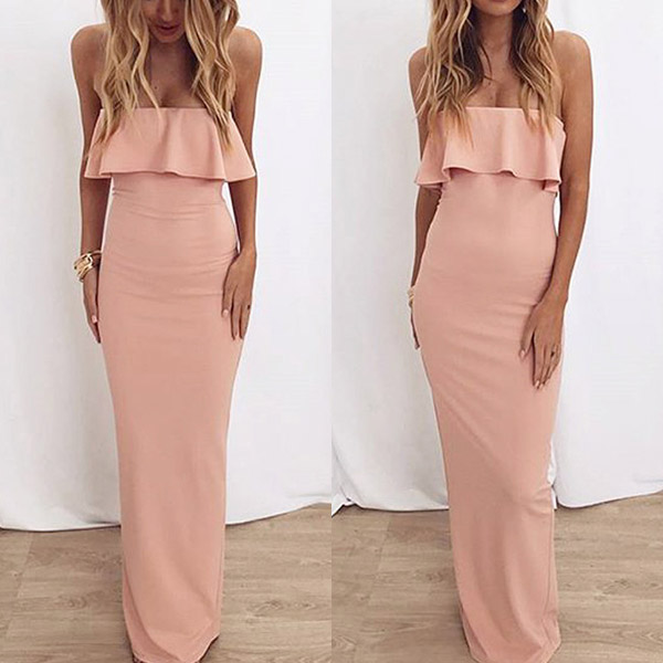 on this dress. The ruffle strapless design makes it look so sexy and charming,while the solid color tone