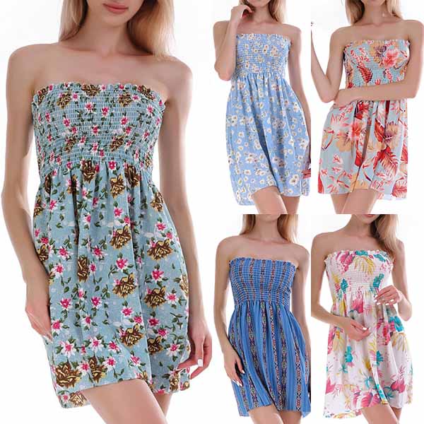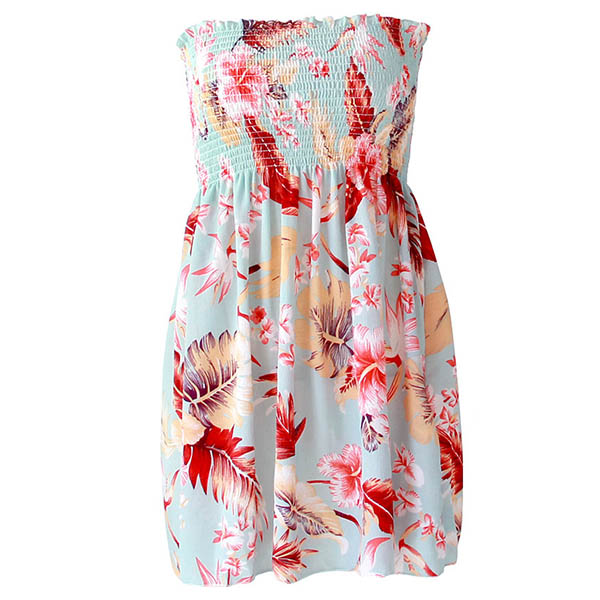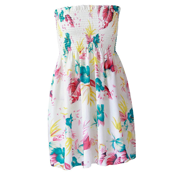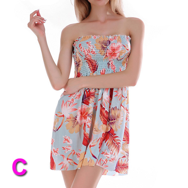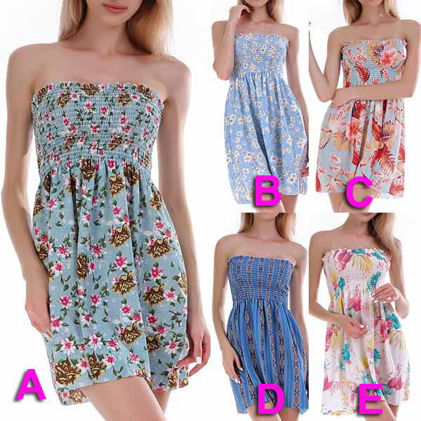 feature a flowing silhouette with an allover flower print, come with off-the-shoulder design,