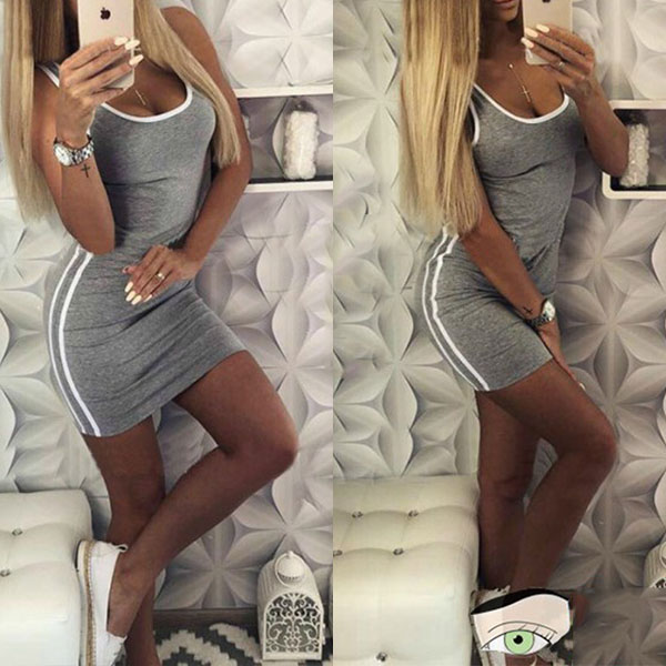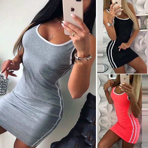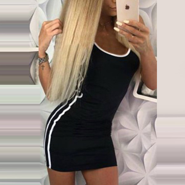 a form-fitting silhouette, scoop neckline, side stripe accent, contrast color detail, slip into your