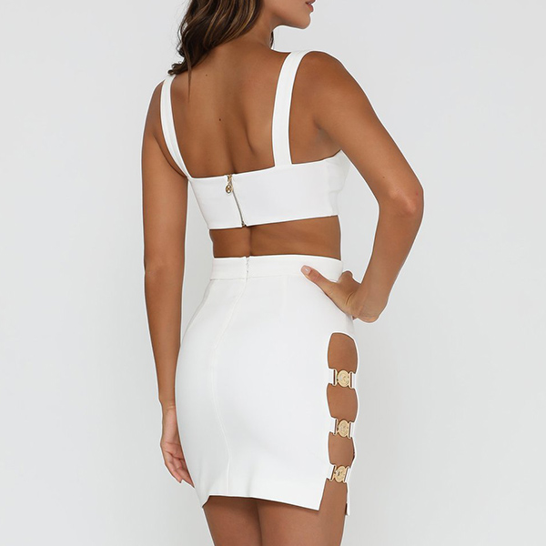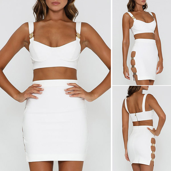 feature a high waist , a side side metal buckle design, equip the two piece with your charming high