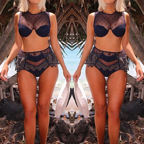 Obviously,you would be the focus on the beach once you wear this high waist bikini set.