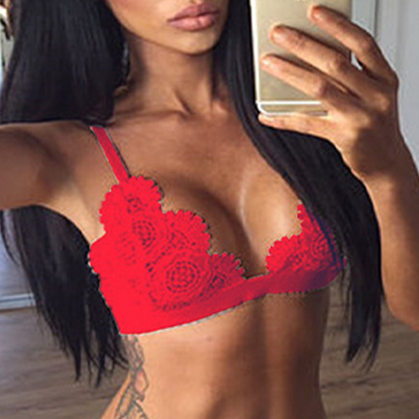 Add a touch of flirty and sexy vibe to your look with this bra. Its see-through gauze and lace spliced details make it look so feminine and alluring. If you wanna show off it,we suggest you matching with your hollow out smock or some deep v-neck outfits.