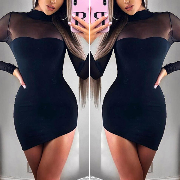the see-through gauze spliced design makes this piece look so sultry,while the tight silhouette design
