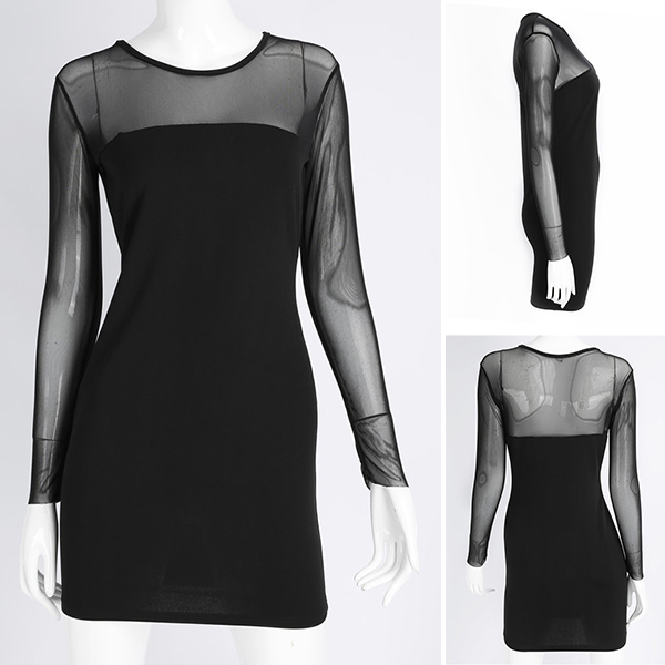 gauze spliced style,designed with long sleeve,round neck and a fit silhouette,this dress of course can demonstrate your