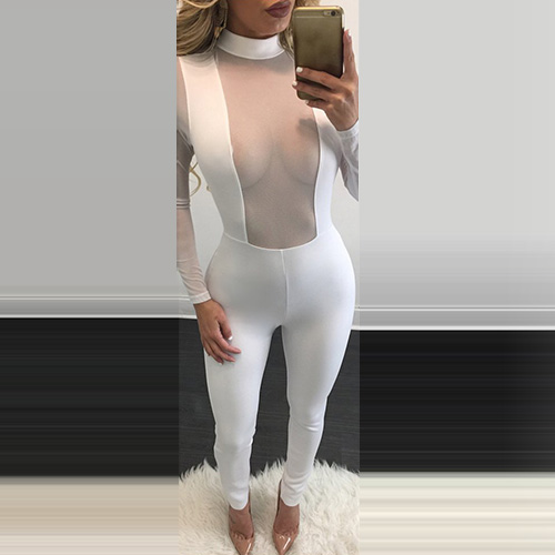 Flaunt your sexy and sultry style through this super seductive jumpsuit. See-through gauze spliced