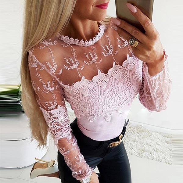 Sexy See-through Gauze Spliced Long Sleeve T-shirt