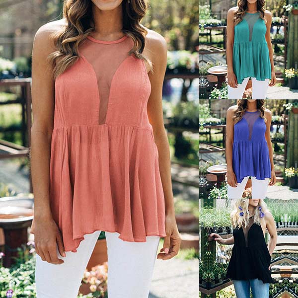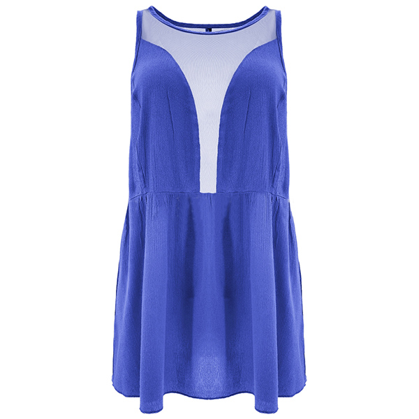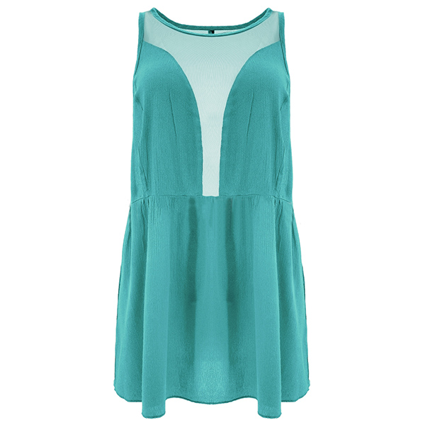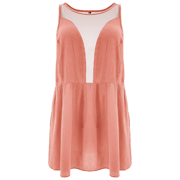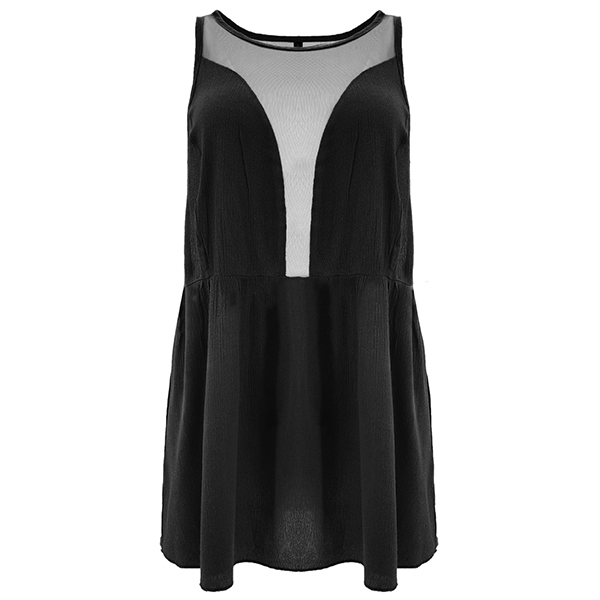 Solid color style,the irregular hem and see-through gauze spliced design make this piece look