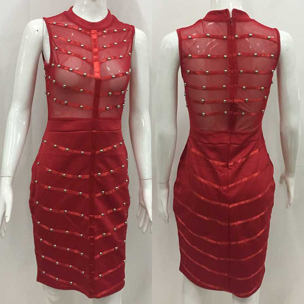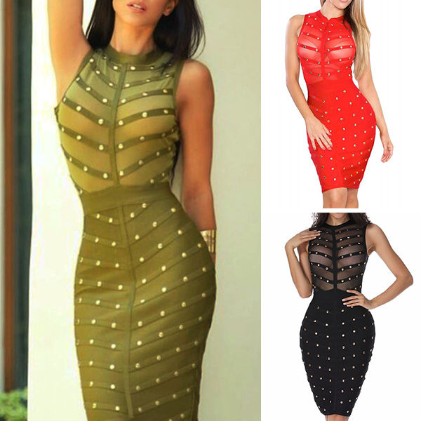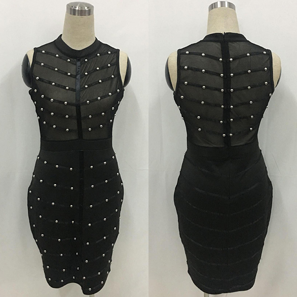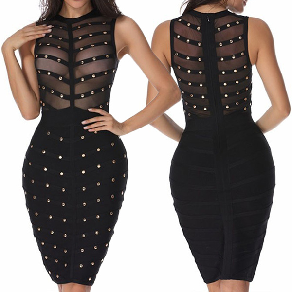 design will cultivate your sexy and seductive curve,while the see-through gauze spliced and rivets details make this piece