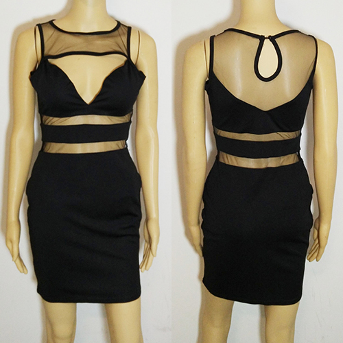 This effortless bodycon dress is perfect for any last-minute invitation. See-through gauze spliced