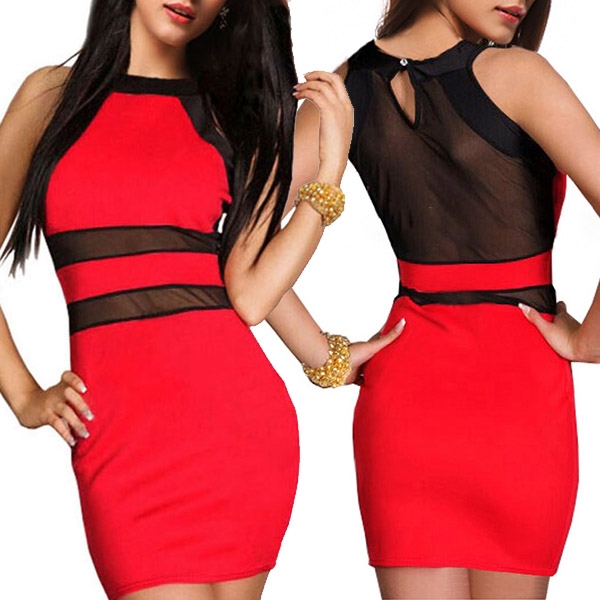 a fit silhouette design,this dress can amplify your seductive curve. And the see-through gauze spliced