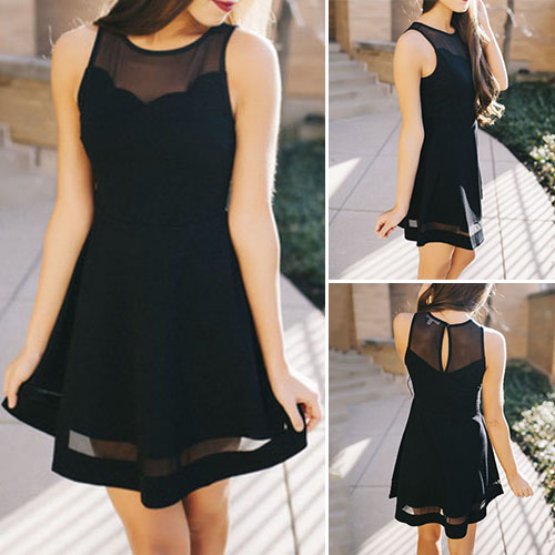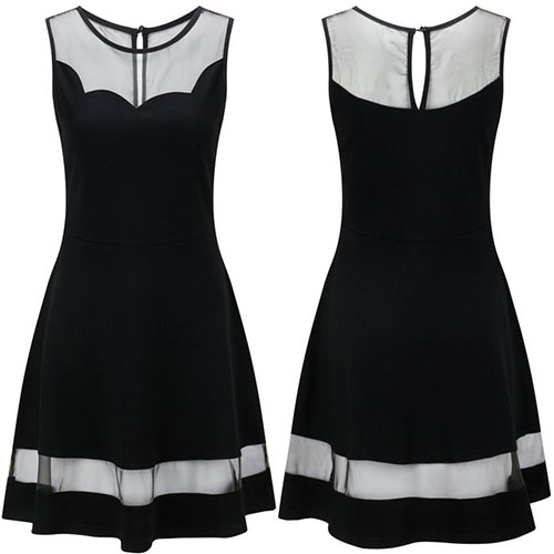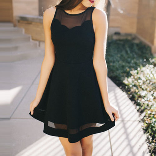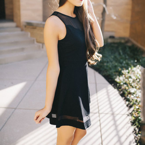 round neck and see-through gauze spliced design,simple,delicate yet feminine. You can try to add a sparkle necklace for a more charming look.
