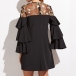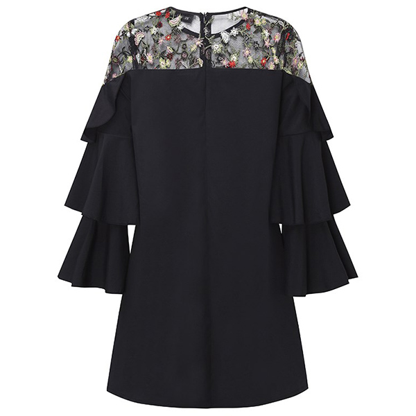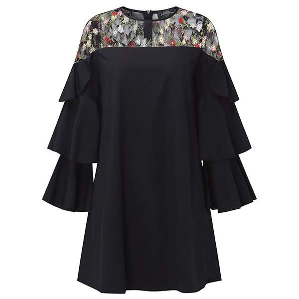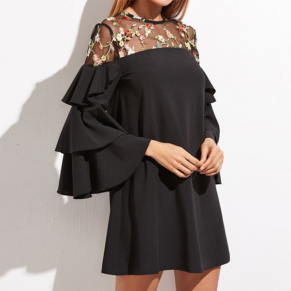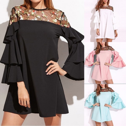 I promise you would be attracted by this chic yet sexy dress. The trumpet sleeve and see-through gauze