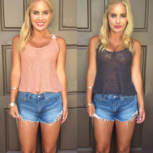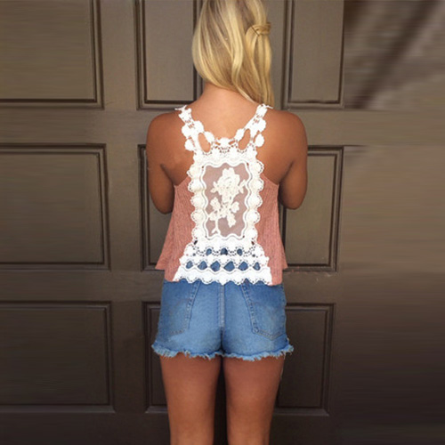 This tank tops looks so sexy and chic. Backside with see-through lace crochet design,making