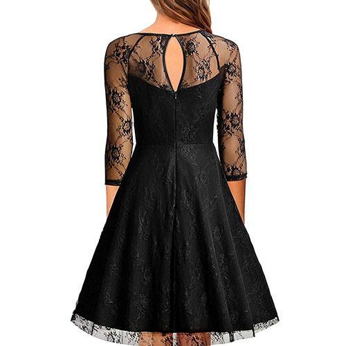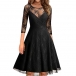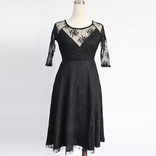 in this one to your wardrobe ensemble. Tailored with 3/4 sleeve,round neck and a flowy hem,its see-through lace spliced details