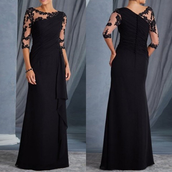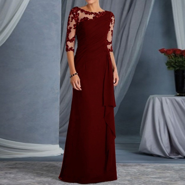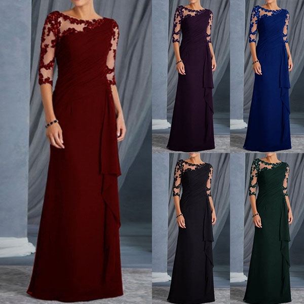 Designed with half sleeve,round neck and a maxi length,the see-through gauze spliced design will
