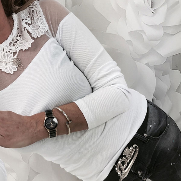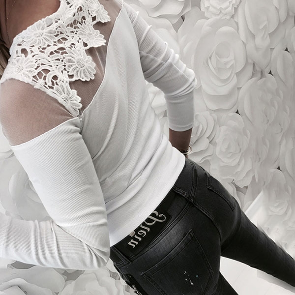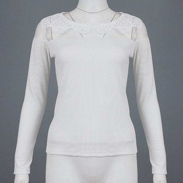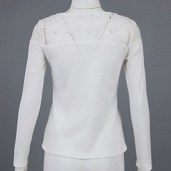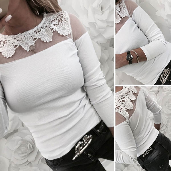 with long sleeve,round neck and a fit silhouette,simple yet cozy. Meanwhile,the see-through lace