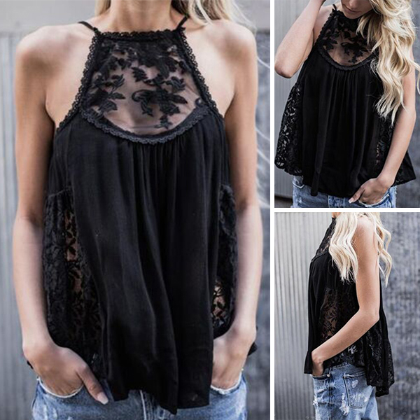 design can give you a cool and comfortable day,while the see-through lace spliced details make this piece look more