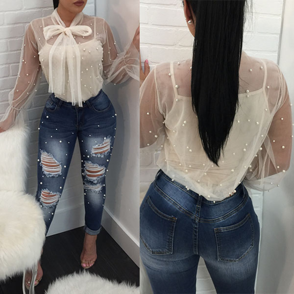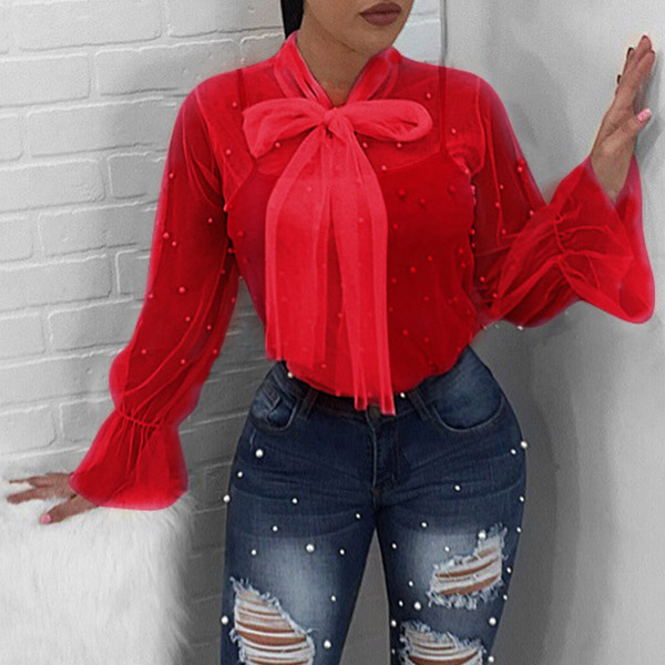 It is a good chance to enrich your wardrobe ensemble by adding this blouse. See-through style