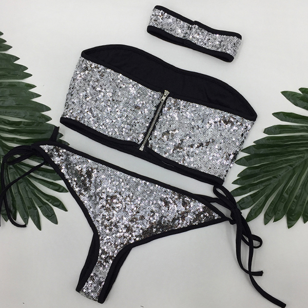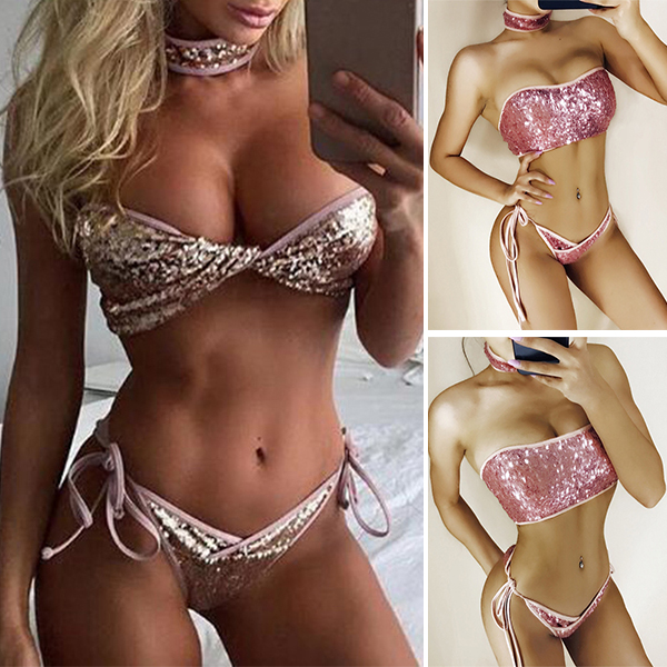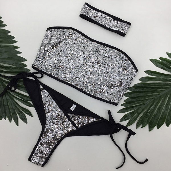with sequin details make it look more dazzling and eye-catching. Wanna a sexy and appealing beach look? This set is an ideal choice.