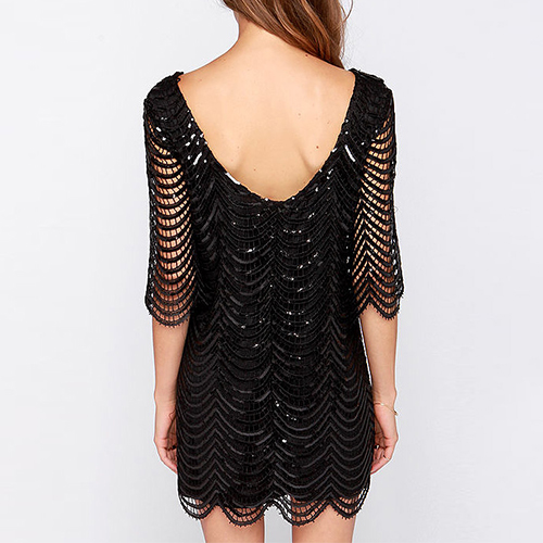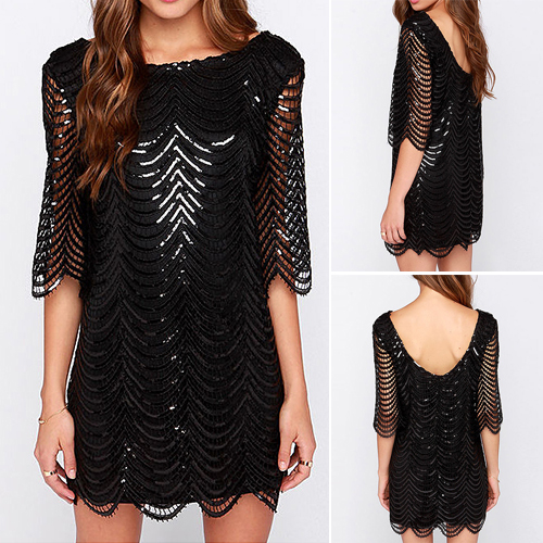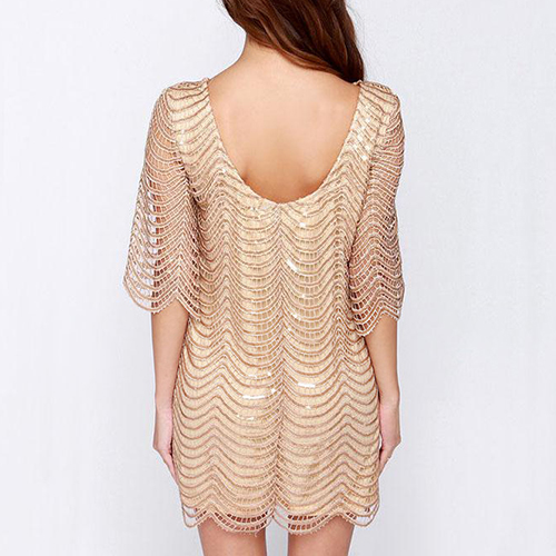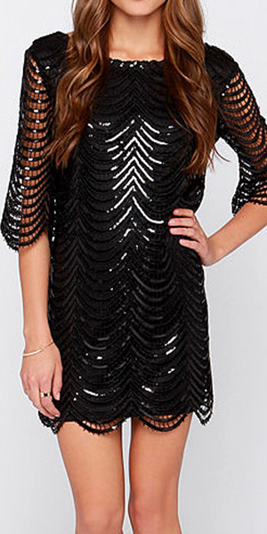 This dress would complete a perfect transition from day work to night party. Boasting a shining sequin style,