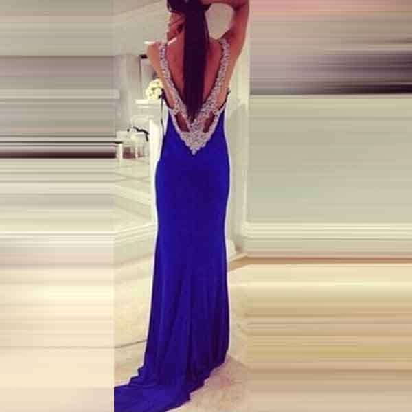 The backless,v-neck and sequin details and floor-length hem design make this piece look so sexy and generous.