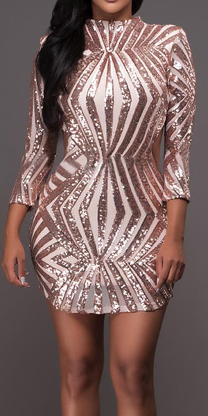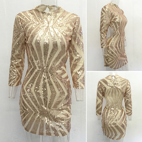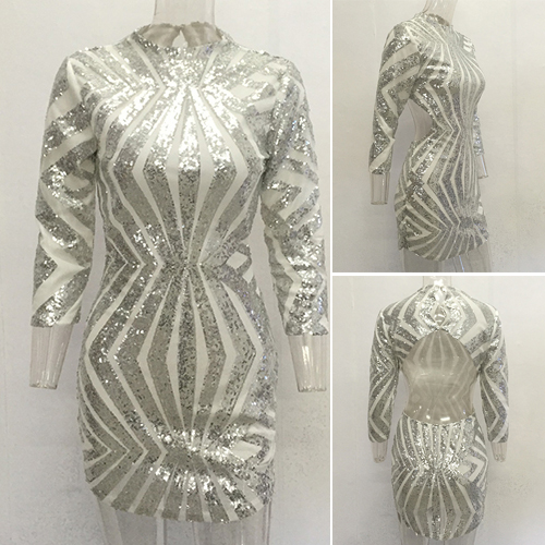 equipped with sequin spliced, round neck, 3/4 sleeve and backless design, which perfect