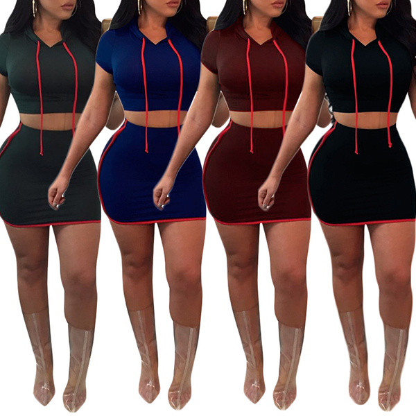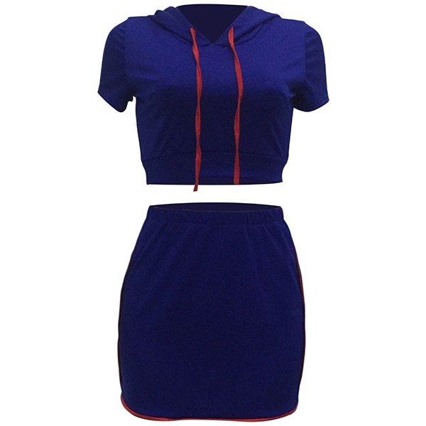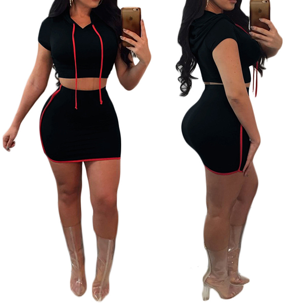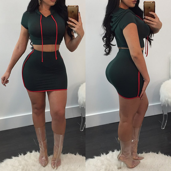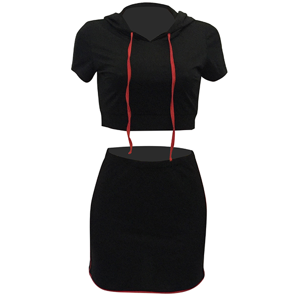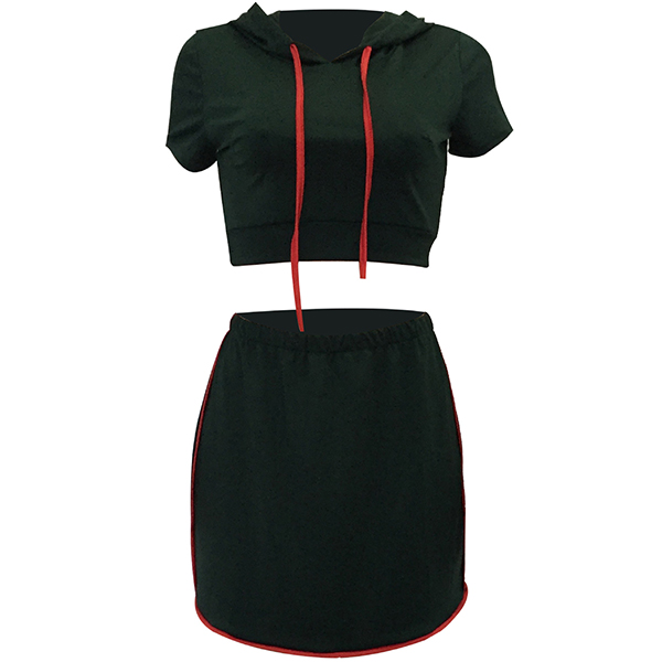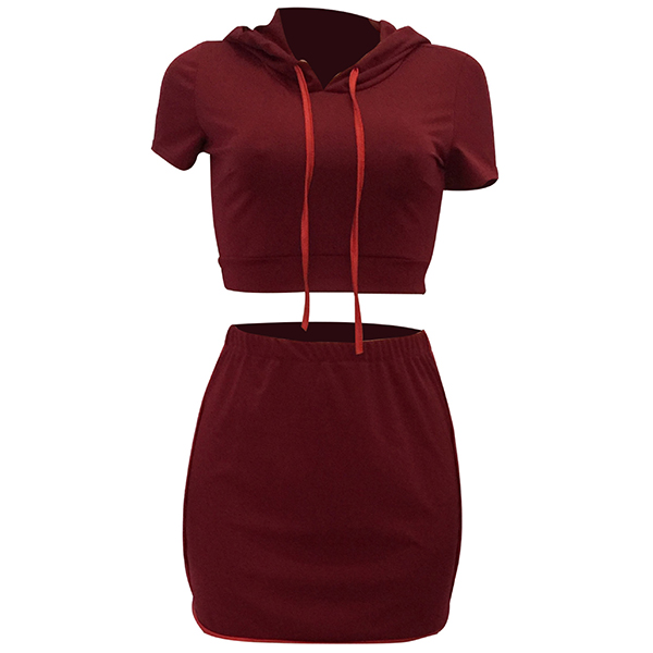 short sleeve hooded crop top and a high waist skirt,crafted from soft and breathable fabric,this two-piece set can