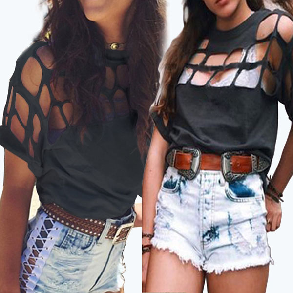Have you ever seen such a chic and sexy t-shirt? It boasts a classic black tone,the hollow out details make