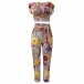 and eye-catching printed pattern,including a short sleeve round neck crop top and a high waist pants,