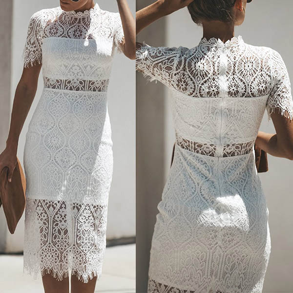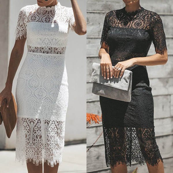 a fit silhouette,this dress can showcase your perfect curve. The hollow out lace details make this piece