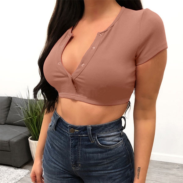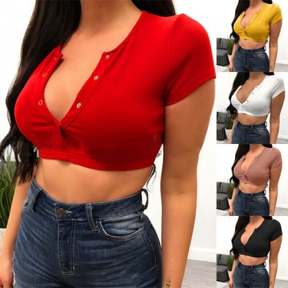 Showcase your slender waist through this crop top. It comes with a solid color,finished with short
