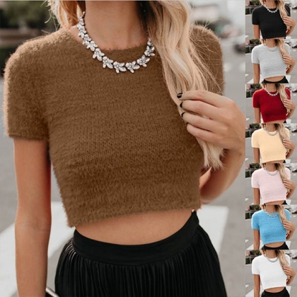 with short sleeve,round neck and a fit silhouette,this piece knows how to express your sexy and