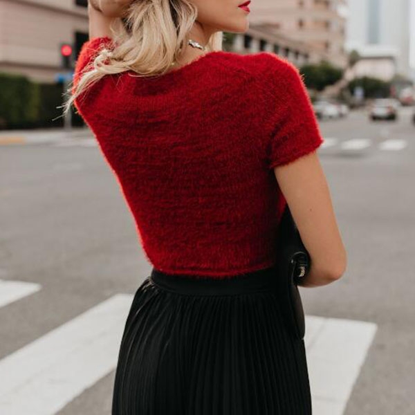 It is a good chance to showcase your slender waist through this knit crop top. It features a solid color,