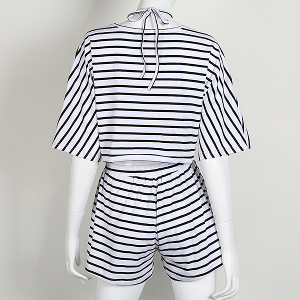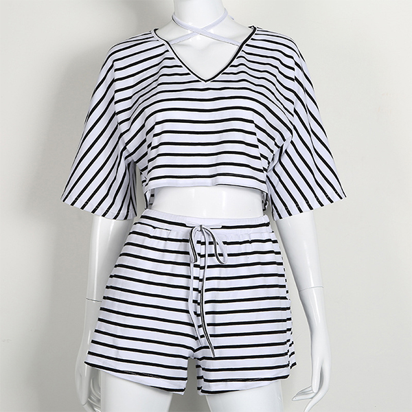 Even on your casual weekends,you can easily demonstrate your female appeal through this two-piece set. Striped style,